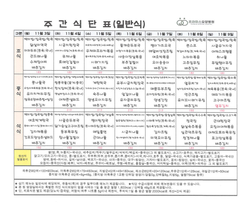 주간 식단표 입니다. (25.11.03 ~ 25.11.09) 페이지 정보 작성자 프라미스요양병원 댓글 0건 조회 973회 작성일 25-04-14 12:25 목록 본문 주간 식단표 입니다. (25.11.03 ~ 25.11.09) 다음글면회 안내드립니다. 25.04.14 댓글 0 댓글목록 등록된 댓글이 없습니다.